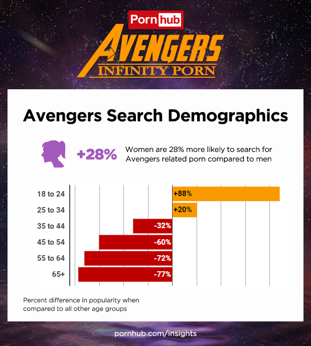 Our statisticians found that women are 28% more likely to search for Avengers when compared to men, and millennials under the age of 35 are far more likely to search when compared to older age groups.