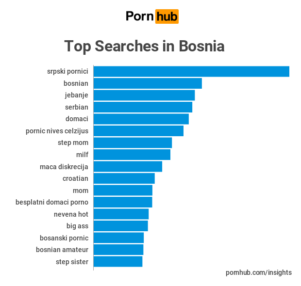 The most popular search in Bosnia is “srpski pornici”, followed by “bosnian”, “jebange” and “serbian”.