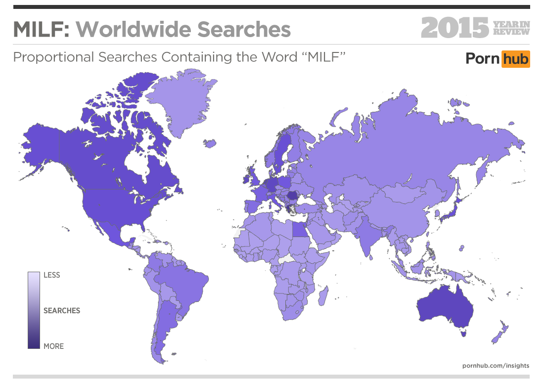 And now for a look at what was searched for the most on Pornhub over the course of the last 12 months. In 2015 ‘lesbian’ was the most searched term on the site. Lady-on-lady loving is also the type of content that happens to be the most popular among our female viewers and as we’ll see a little later on in our coverage, our female viewership has also grown over the course of the past year. This may be what finally pushed ‘lesbian’ into the number one spot. “Research by Dr. Meredith Chivers of Queens University has shown that women are aroused by all kinds of sexual activity/imagery, whether they are gay or straight, while straight men are usually not aroused by gay porn and gay men generally not aroused by straight porn,” notes Dr. Laurie. “It could be that the sexual acts they see on lesbian porn is what they favor (mostly cunnilingus), or simply that they get aroused to such a variety of imagery that it is difficult to pinpoint true desires versus what their bodies respond to.” Other big gaining search terms this year were ‘black’ with a 16 rank placement jump and ‘celebrity sex tape’ with a 47 place jump. Family favorite ‘step mom and son’ jumped an astonishing 71 places, making it the 15th most searched term on Pornhub, in the world. Dr. Laurie suggests that “taboo acts will always rank high simply because it’s taboo. It’s also only in fantasy and it usually stays there, as compared to threesomes which are often desired in real life for example.”