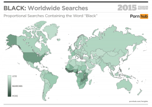 This heat map switches things up a little and shows us where which of our top categories claim the number one rank as most viewed in different countries around the world. As you can see, there’s lots of red on the map, indicating the tremendous popularity of the Lesbian category in countries like the United States, Canada Norway, Finalnd, Australia, Morocco and Guatemala, to name a few. There’s a decent amount of yellow on there too, showing how much countries like Mexico and India enjoy the Teen category. Most of Africa lights up in the sage color denoting the popularity of the Ebony category there.