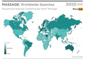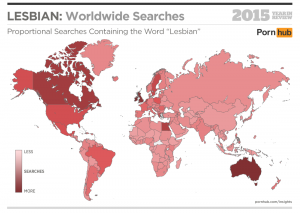 We’ll continue with a list of the terms that had the most significant proportional search gains from 2014 to 2015. At the top of the list is ‘giantess’ with an impressive 1091% gain. In case you’re unfamiliar, in this context giantess refers to the depiction of a larger than life woman getting down with some very tiny men. Other impressive gainers include ‘celebrity sex tape’ with an 829% increase over the course of the last year (thanks Kim!) and ‘man eating pussy’ with a 769% gain. “This one may be due to the increase in number of women viewing” the site, suggests Dr. Laurie.