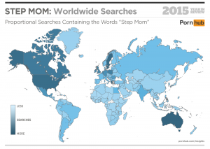 Down under in Australia searches for step relatives are all the rage. ‘Step mom’ and ‘step sister’ land in at the number 2 and number 8 spots for most searched terms in the country, both with some impressive gains over last year. Similarly, the top gaining searches here are ‘step mom shower’ with a 310% increase and ‘step sister caught’ with a 283% growth in searches since 2014.